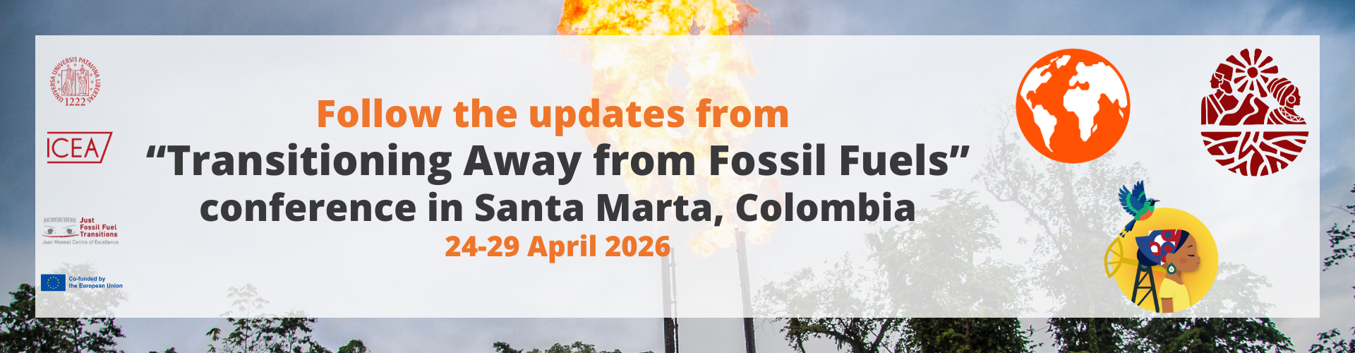 On April 29th, the Centre of Excellence JFFT will co-organize the parallel event “Between Amazon and Arctic Place based just fossil fuel transitions away. Panel on: geovisualization of yasunization multitudes” (10:00 – 12:00 AM in the Auditorio Roque Morelli, Universidad of Magdalena, Santa Marta, 5:00-7:00 PM CET)“.